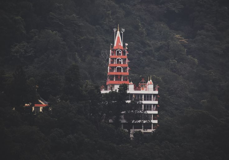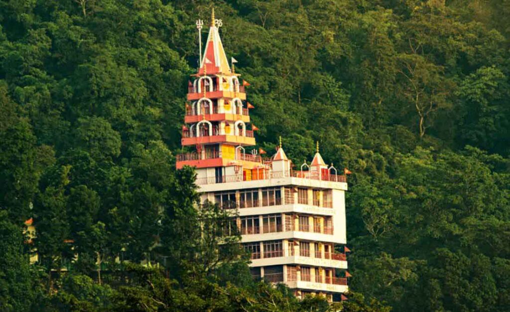 A multi-story temple dedicated to various Hindu deities, located near Laxman Jhula, offering a magnificent view of the river and surrounding hills.